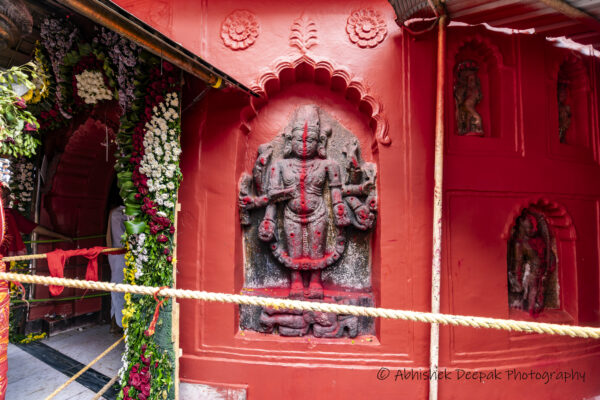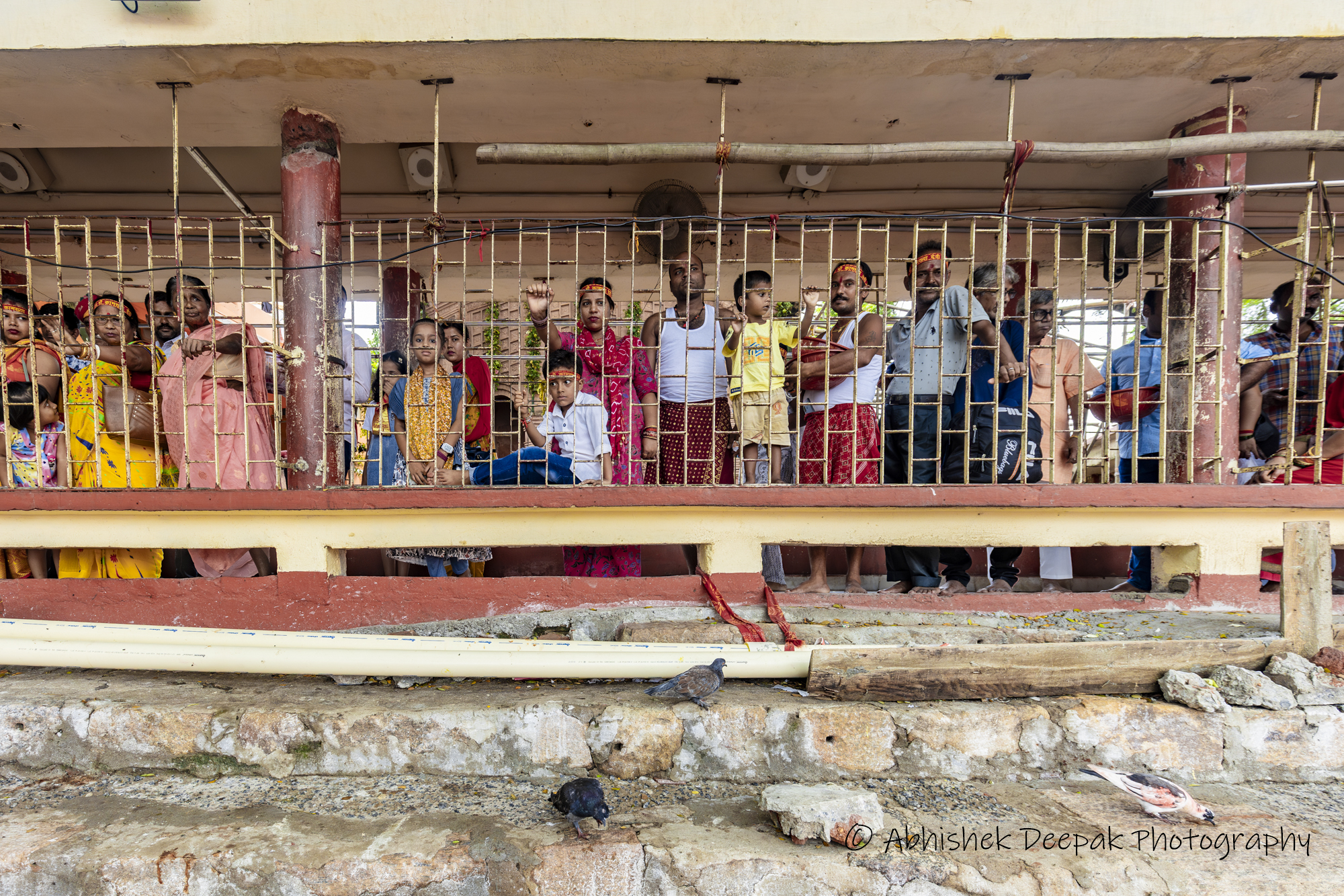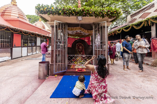 The festival attracts a large crowd from not only various parts of India but abroad as well. Here people have gathered on the steps of the temple.Here important spiritual leaders associated with various groups such as the Panch Dashnam Juna Akhara and the Kinnar Akhara are gathered here.The mela is attended by a large number of Sadhus and they stay in an area called the Akhada. Every evening, they come out to perform Parikrama around the temple and then head back to the Akhada.This is a bathing area where alot of devotees cleanse themselves before offering Darshan to the Goddess. This area is known as Saubhagya Kund.The mela is also known as Tantric fertility festival as Tantric Babas make their public appearances only during these four days while for the rest of the year, they remain in seclusion.The stone carvings depict Goddess, and a red fabric is draped in front of the stone carvings. Devotees walking barefooted to reach the temple. It is 3km walk up from the main gate to the temple and can take much longer depending on the crowd. On the way up to the temple, there are various stands where people are offered free juices and water.Each day during the festival, the temple is visited by lakhs of visitors and include Sadhus and Sadhvi’s, householders, Aghoras, Tantriks, Sanyasins and even foreigners and all come mainly to seek the blessings of Goddess Kamakhya. A small girl is dressed as the Goddess and some puja is performed here.The temple is home to many pigeons and here the pigeons appear light reddish in colour because they are covered in Sindoor or Vermilion which is an orange red powder. Detailed stone sculptures carved on the outside of the temple that dates back to several centuries. The image shows detailed stone carvings adorned with red markings, likely vermillion or sindoor which indicates religious significance.This image displays a wide view of the Brahmaputra River taken from a high up viewpoint overlooking the city of Guwahati. The bridge visible in the distance is the Saraighat Bridge.Devotees queuing for hours for the darshan or worship of Maa Kamakhya.This is an area of the temple where devotees chant mantras and light lamps.Ancient stone carving depicting some Goddess done with so much detailing on the outside of the temple.A devotee praying to an idol in front of the main temple.Pigeons on the roof top of the temple.